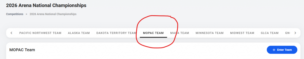 When it’s time to enter your team, make sure you are on the MoPac Team tab.